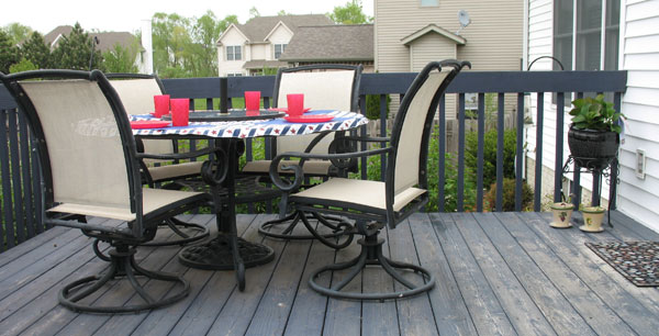Our deck is functional but it’s not fancy. It’s very simple. I don’t have a green thumb. I’m not artistic. I’m not crafty. Frankly, I’m design-challenged. My deck is a great space for sitting and talking/relaxing. Unfortunately, it isn’t very cozy or inviting. The kids keep asking to eat on the deck once the weather gets nice. We love to throw the umbrella up and enjoy lunch or dinner. But we just bring some plates and glasses out and don’t do anything really special.