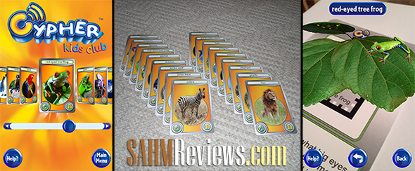 But, they began playing too much on the iPad and not using it for educational opportunities – so the time had come to bring back some balance. Enter these new flash card products from Cypher Kids Club! Targeted at kids ages 3 through 10, these should be a good distraction from not-so-happy birds and made-up-words-with-acquaintances. Their associated apps are a free download from iTunes, but consider yourself warned – because of the technology and animation involved, they are larger-than-normal downloads – over 200MB each!