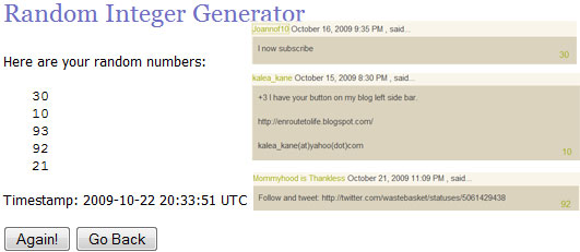 Thanks to everyone who entered the Yoplait Fiber One Yogurt Giveaway.  The following were the first three random numbers drawn that met the giveaway requirements: